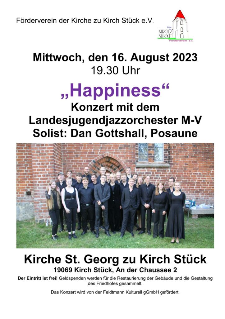 Kirch Stück: Mit einem Bigband-Konzert setzt der Förderverein seine Veranstal-tungsreihe 2023 fort. Am Mittwoch, den 16. August 2023, 19.30 Uhr laden wir Sie wieder ein, sich an der Musik und dem Schwung des Landesjugendjazzorchesters M-V unter der Leitung von Michael Leuschner zu erfreuen.