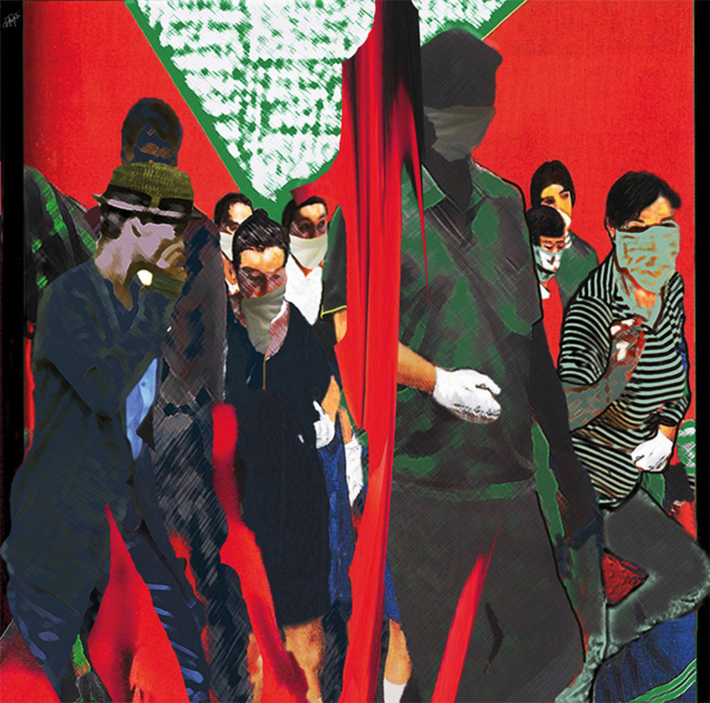 Bild: ©Regina Zacharski – CORONA-KUNST-TAGEBUCH 77 CORONA – ATEMLOS / 13. Juni 2021 / digitale Plastik auf Leinwand / 140×140 cm
