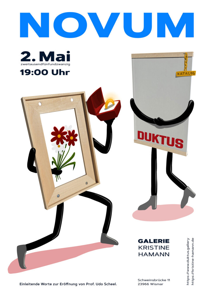 Anlässlich unseres 2603-tägigen Bestehens findet am 2. Mai um 19 Uhr unsere Ausstellung NOVUM in der Galerie Kristine Hamann statt.