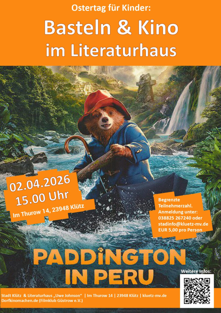 Osternachmittag für Kinder im Literaturhaus: Basteln & Kino „Paddington in Peru“
