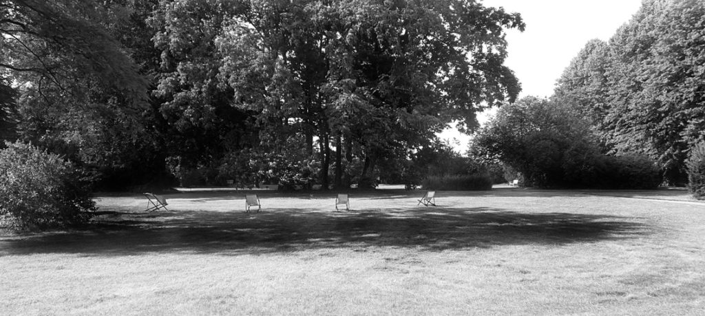 Vier Bäume laden in die Parklandschaft beim Eiskeller ein zu einer Lesung in ihrem ‚BaumBesucherBuch’. 4 Sitzplätze frei.